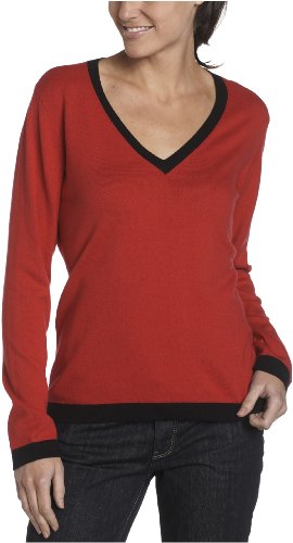 Red Moon Women's Tipped V-Neck Sweater,Ruby/Black,Large BestPrice